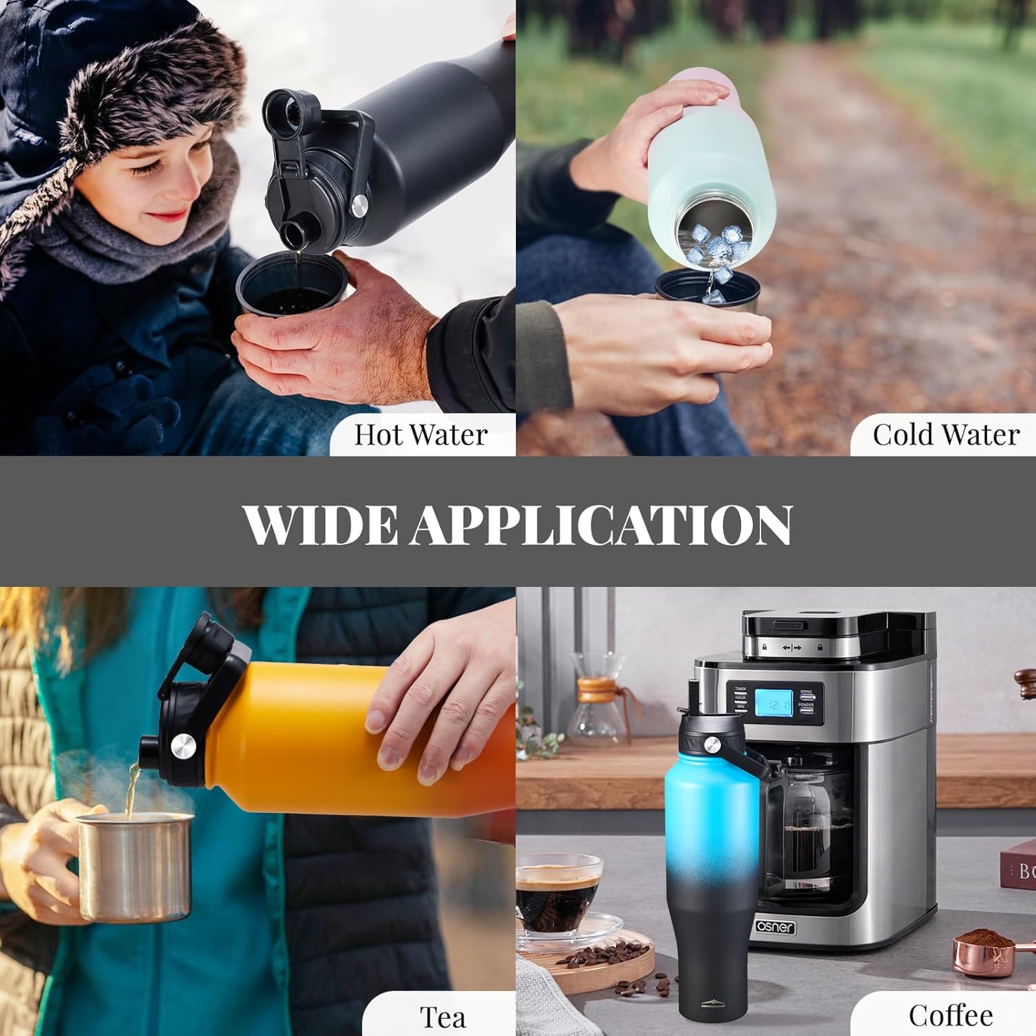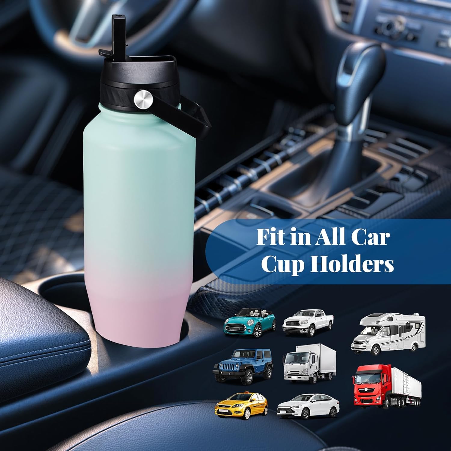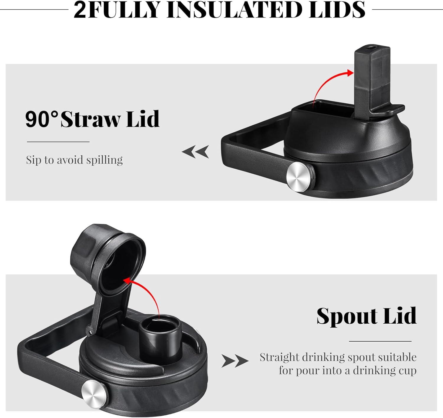 40oz Insulated Water Bottle with Straw/Spout Lids